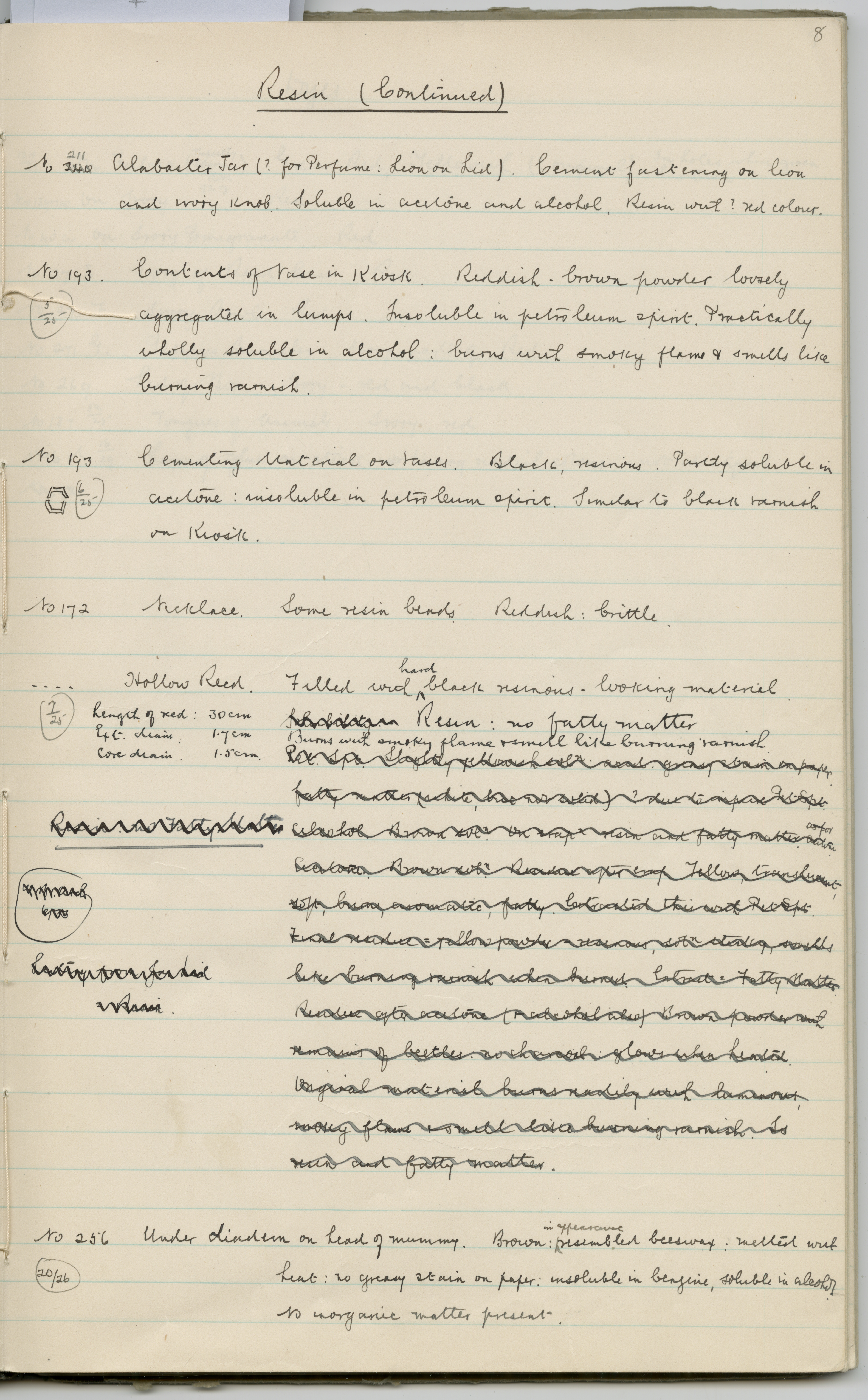 No 193 Cementing Material on Vases. Black, resinous. Partly soluble in