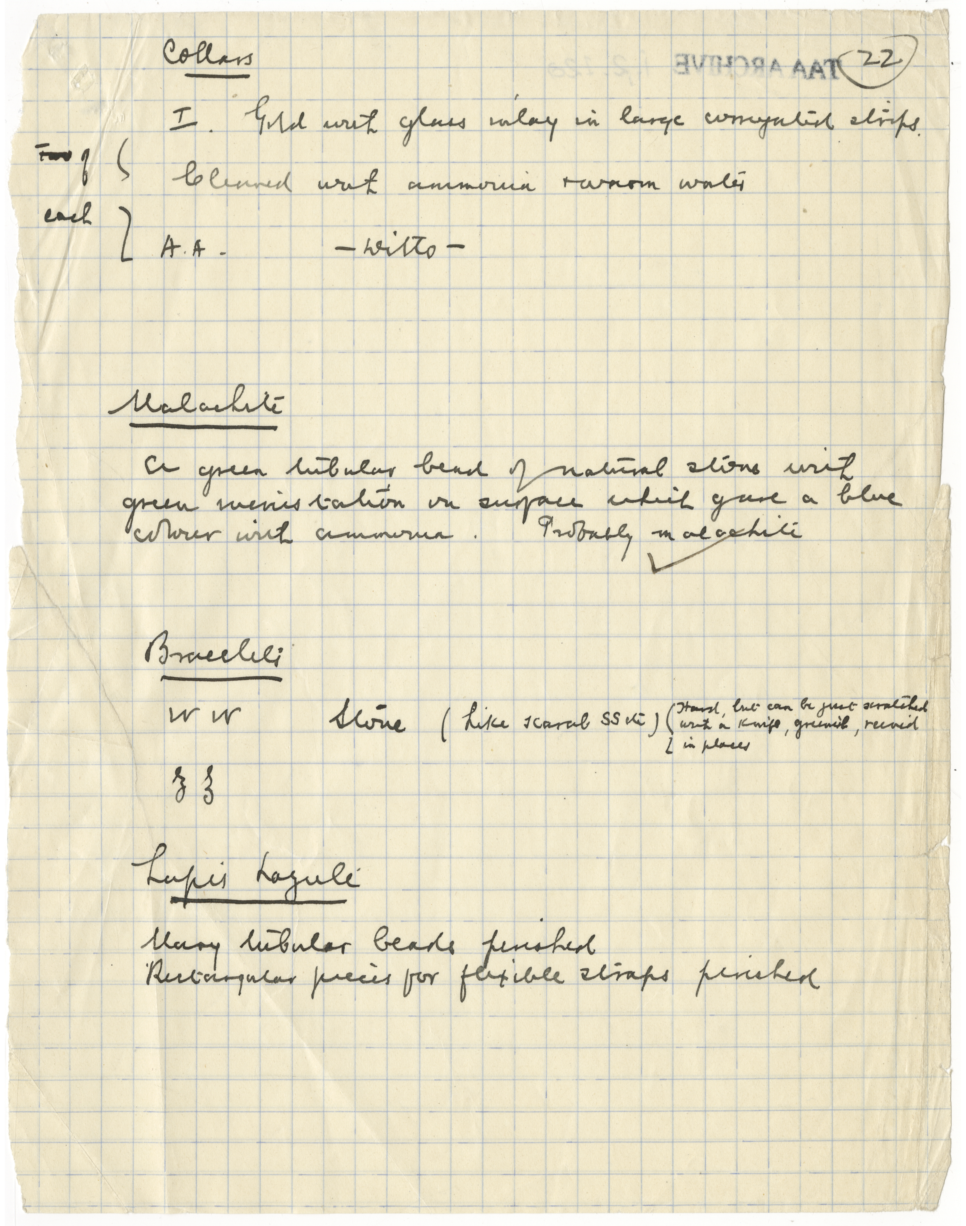 Two of { I. Gold with glass inlay in large corrugated strips.