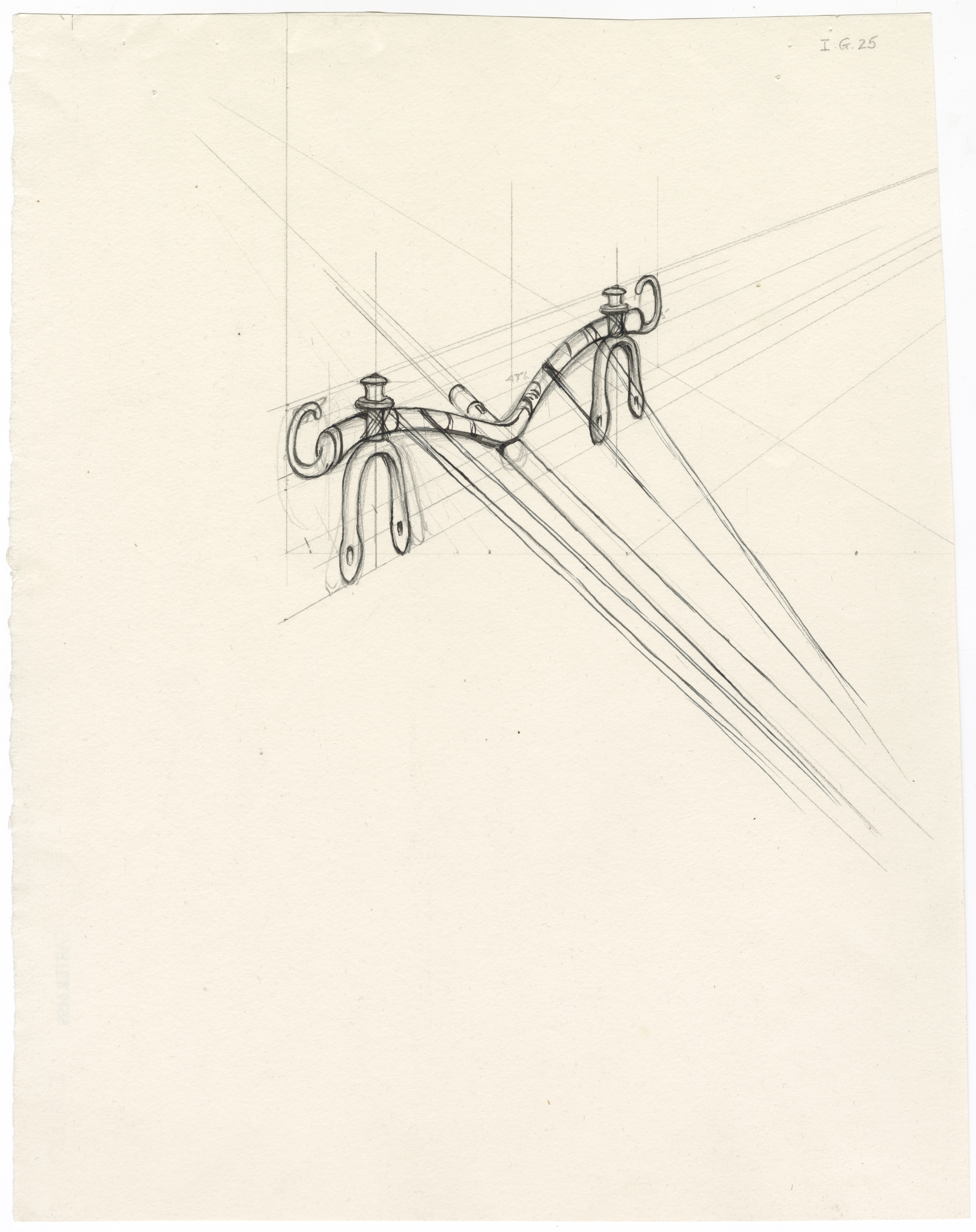Hand-drawn reconstruction of chariot yoke, saddles and harness, presumably from a chariot found in Antechamber