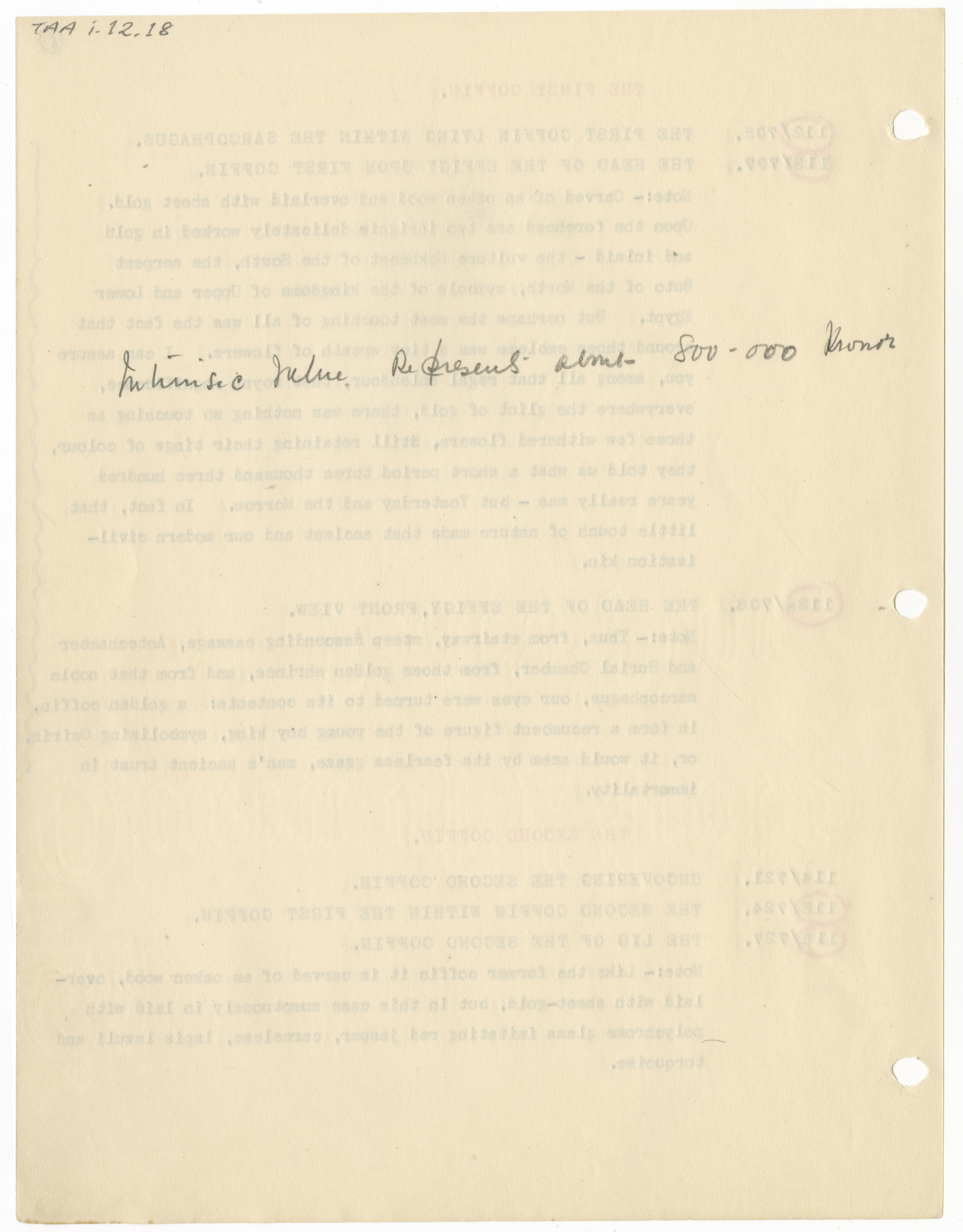 Carter's Lecture Notes for "Stockholm Lecture II. (Royal Burial and Innermost Treasury)"