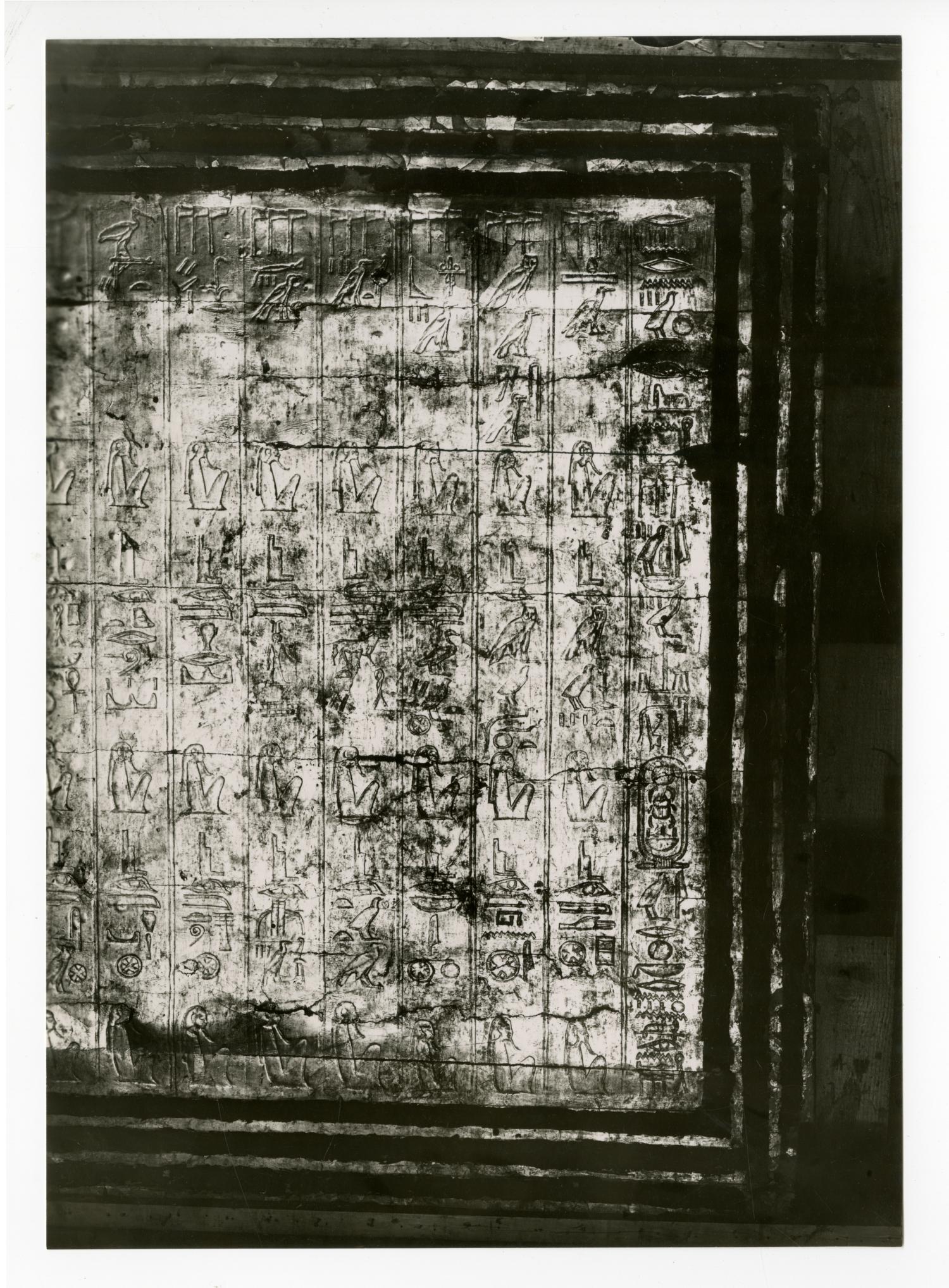 Photograph of the first sepulchral shrine (interior, north side) by Burton, taken in the Egyptian Museum in Cairo.