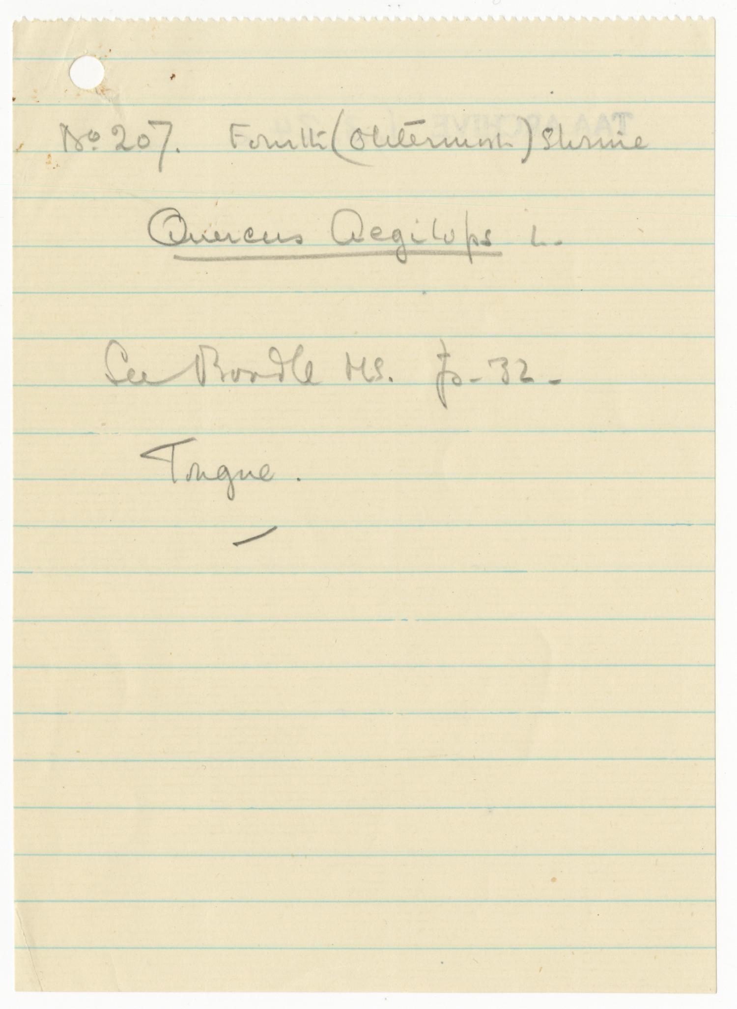 Handwritten note on first sepulchral shrine. Carter uses the correct object number (207) for this shrine but refers to it as the "fourth outermost shrine". Boodle is also mentioned on this page.