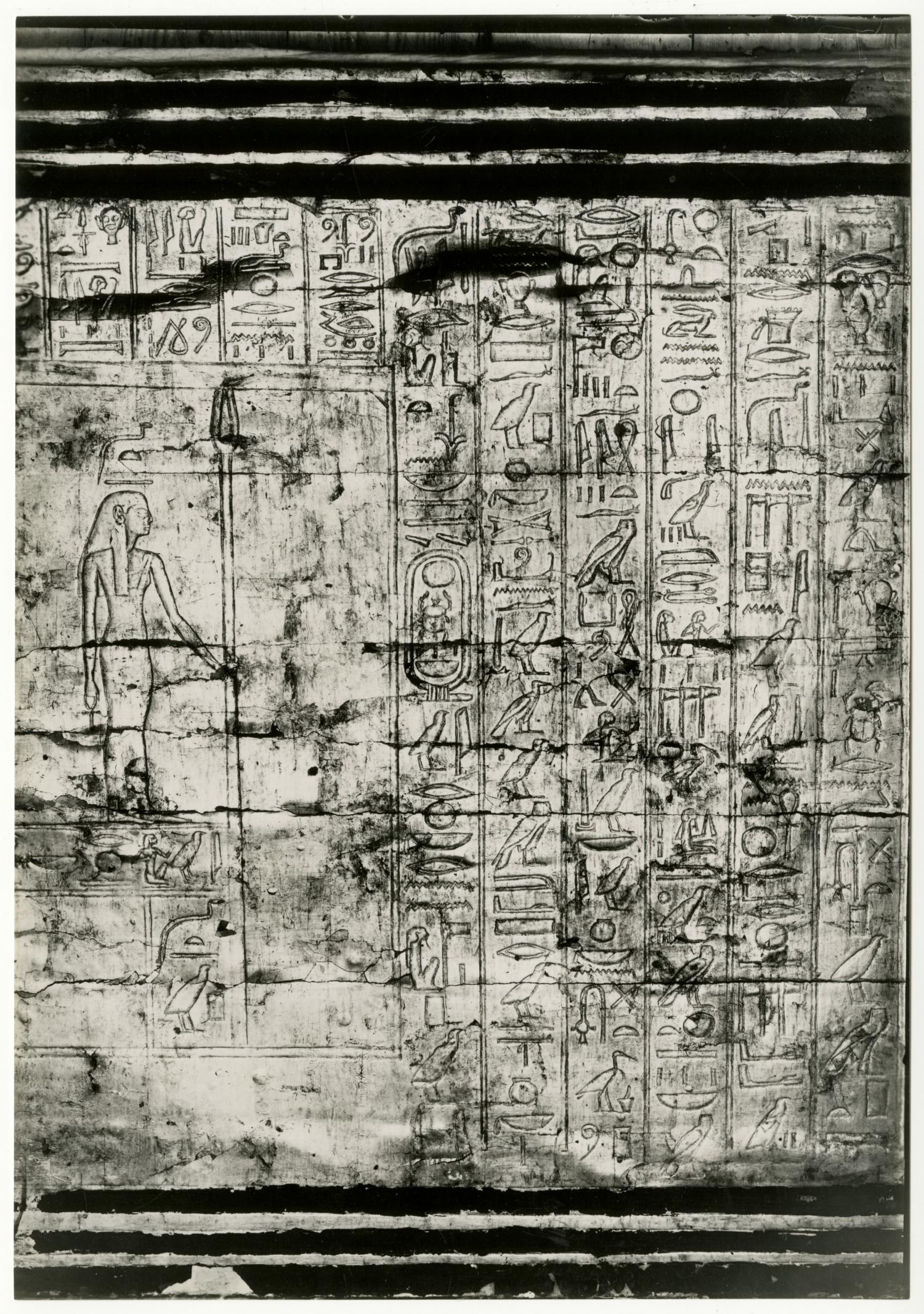 Photograph of the first sepulchral shrine (interior, south side) by Burton, taken in the Egyptian Museum in Cairo.