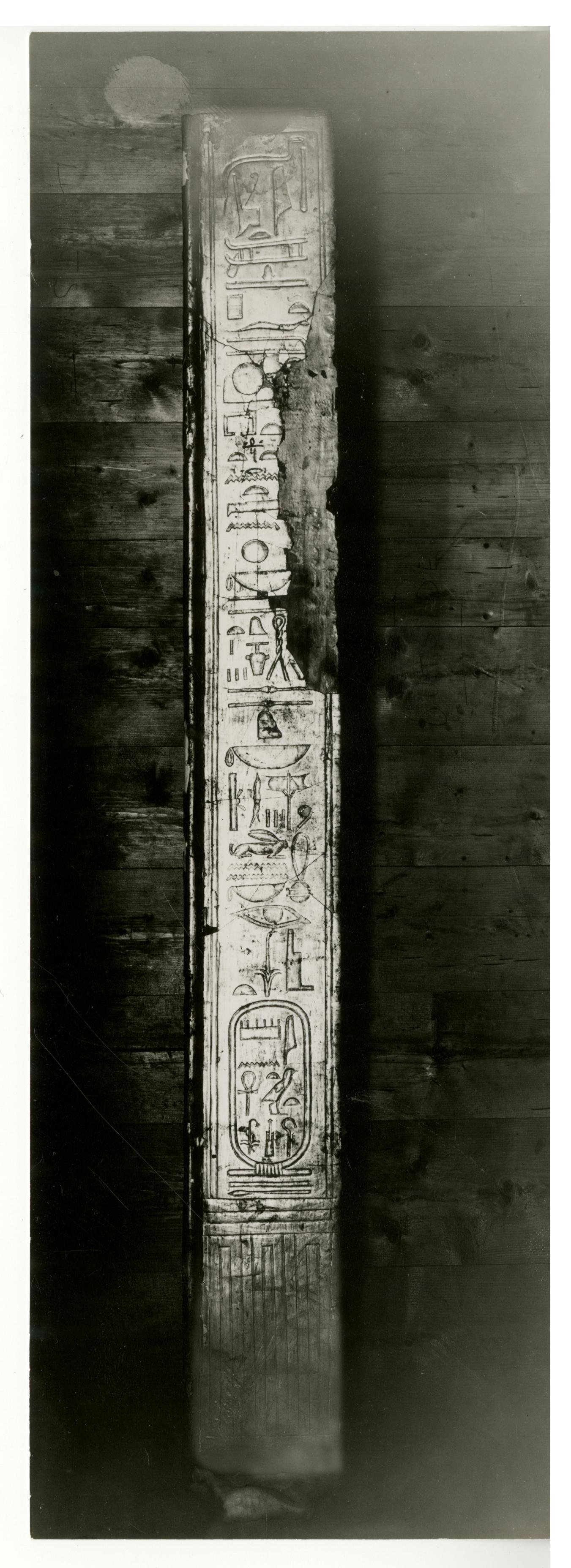Photograph of the first sepulchral shrine (south-western corner-post) by Burton, taken in the Egyptian Museum in Cairo.