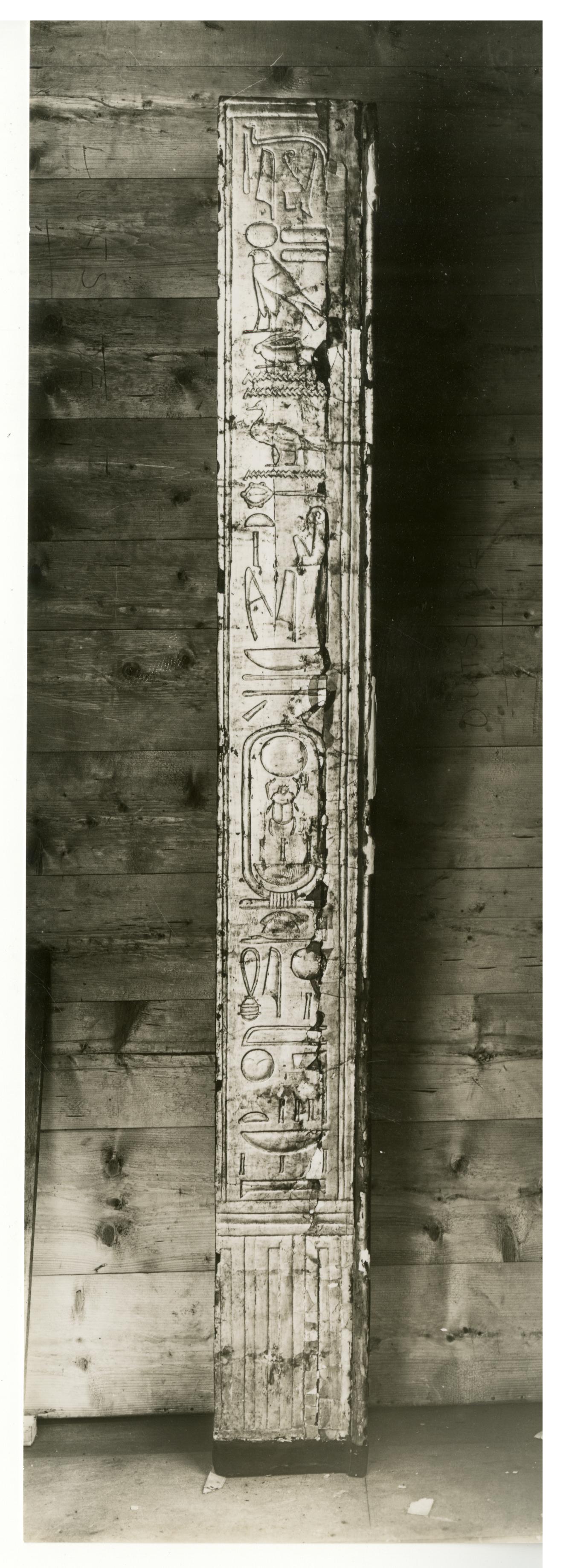 Photograph of the first sepulchral shrine (south-western corner-post) by Burton, taken in the Egyptian Museum in Cairo.