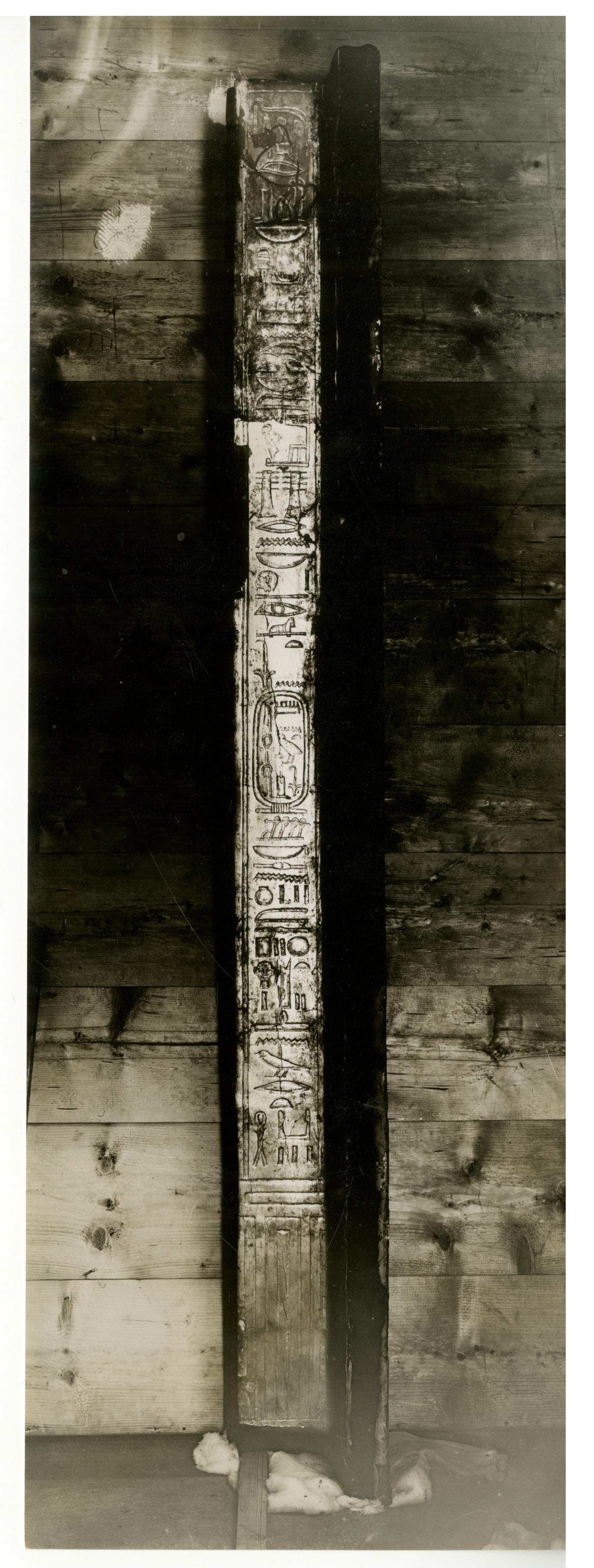 Photograph of the first sepulchral shrine (north-western corner-post) by Burton, taken in the Egyptian Museum in Cairo.