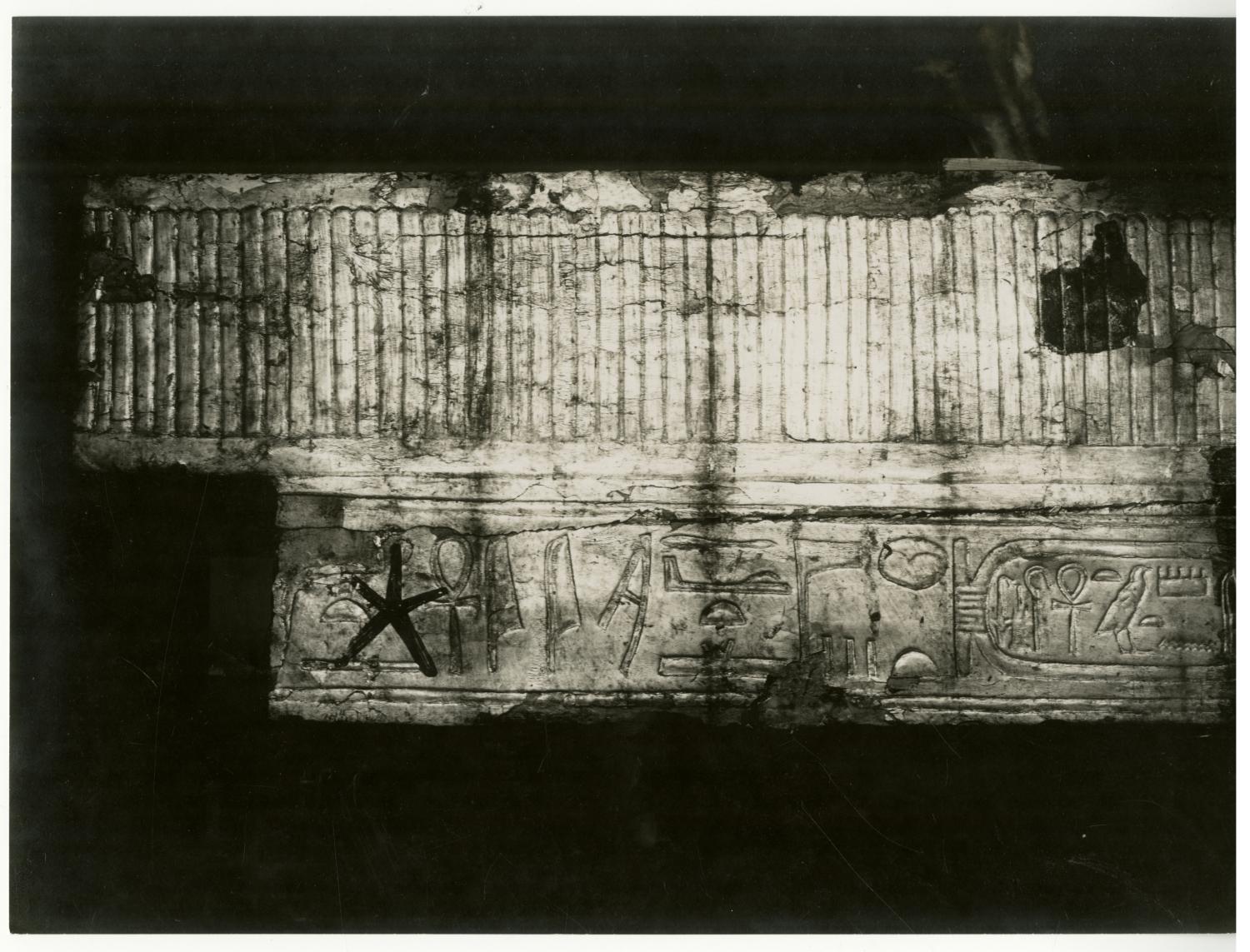 Photograph of the first sepulchral shrine (interior, north frieze) by Burton, taken in the Egyptian Museum in Cairo.