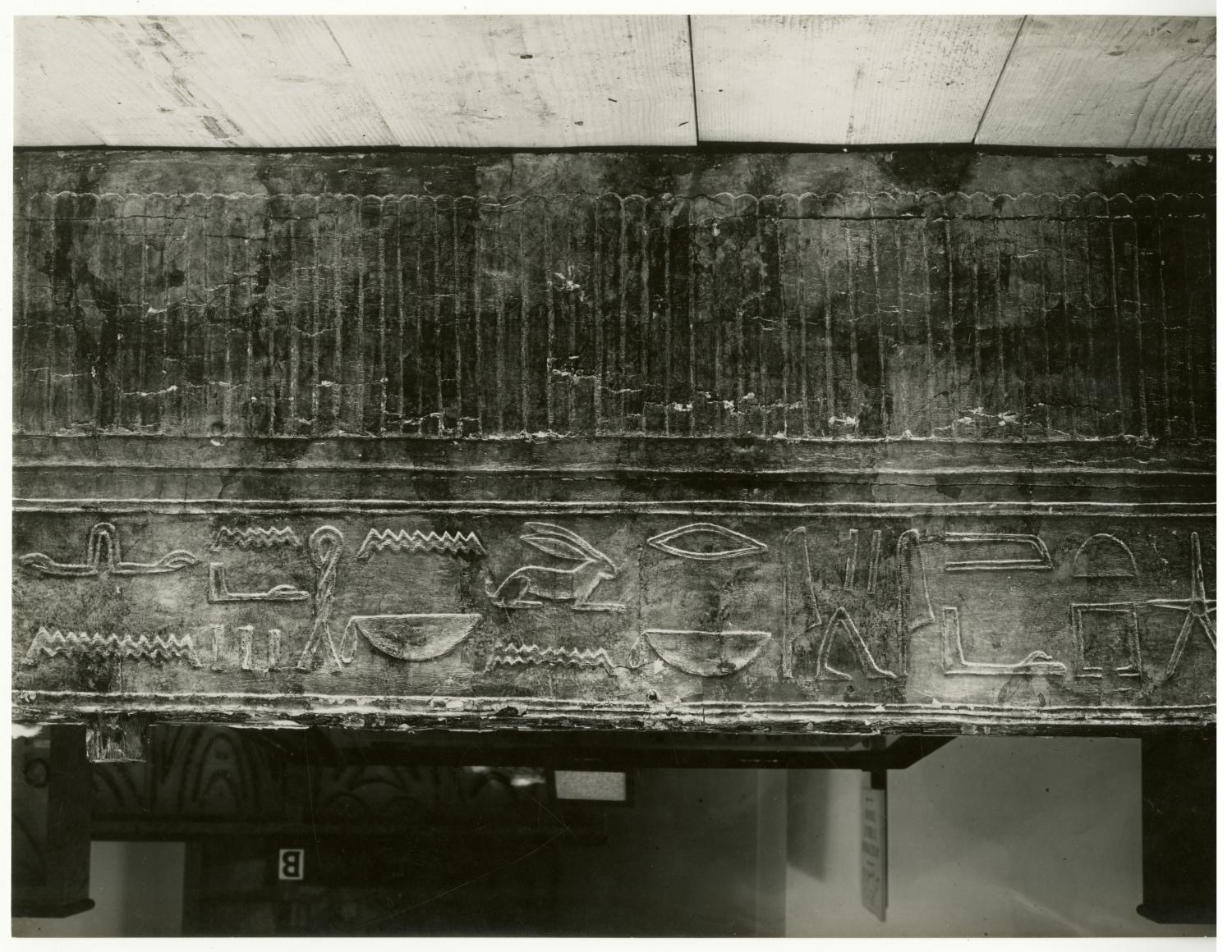 Photograph of the first sepulchral shrine (interior, north frieze) by Burton, taken in the Egyptian Museum in Cairo.