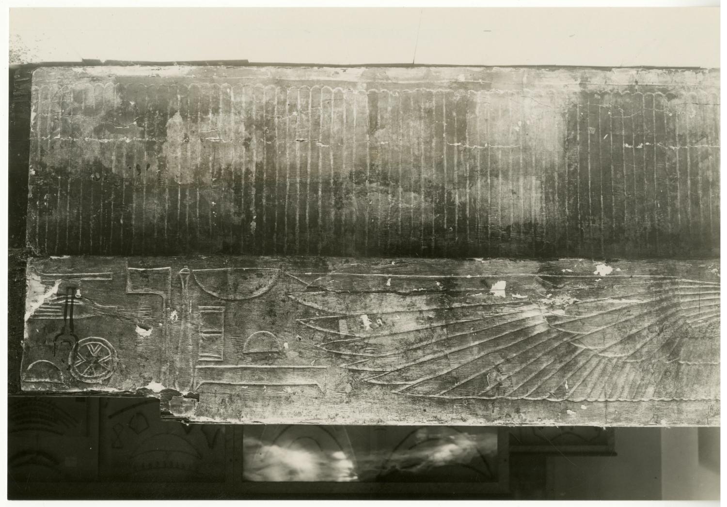 Photograph of the first sepulchral shrine (interior, east frieze) by Burton, taken in the Egyptian Museum in Cairo.