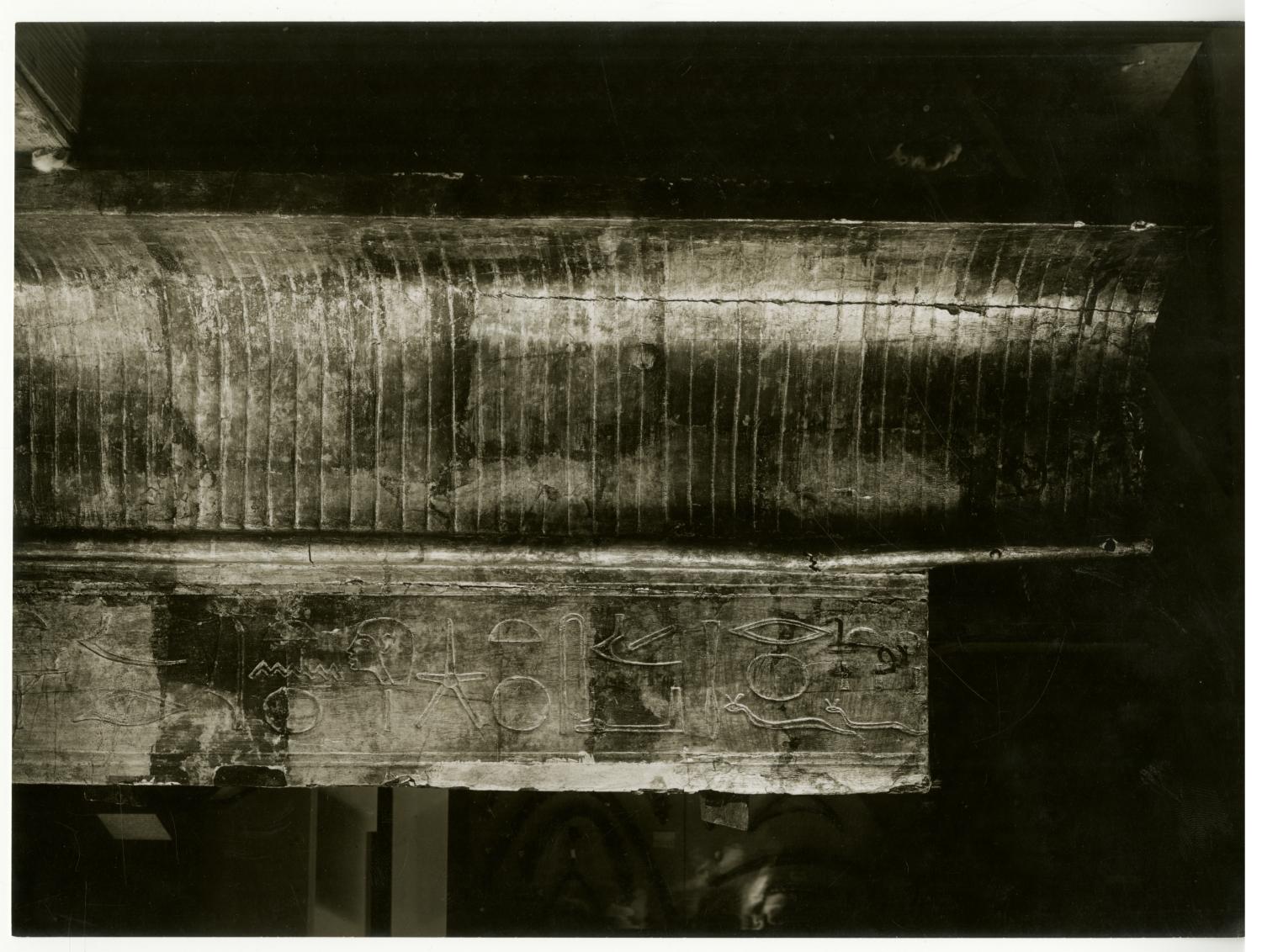 Photograph of the first sepulchral shrine (exterior, north frieze) by Burton, taken in the Egyptian Museum in Cairo.