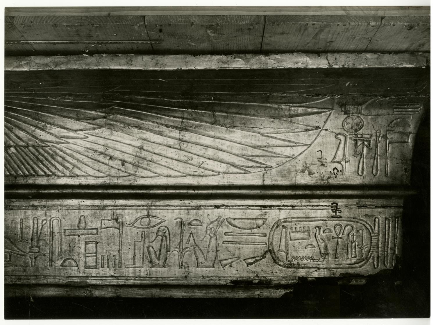 Photograph of the first sepulchral shrine (exterior, east frieze) by Burton, taken in the Egyptian Museum in Cairo.
