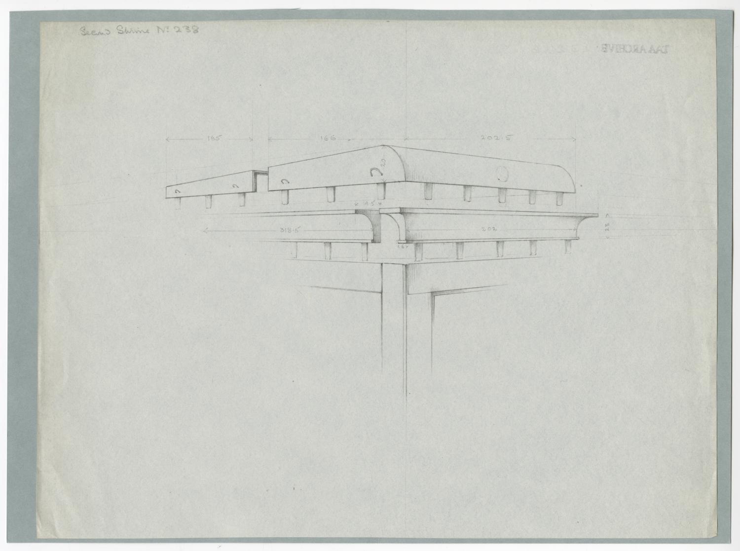 Drawing of shrine detail, noting its construction.