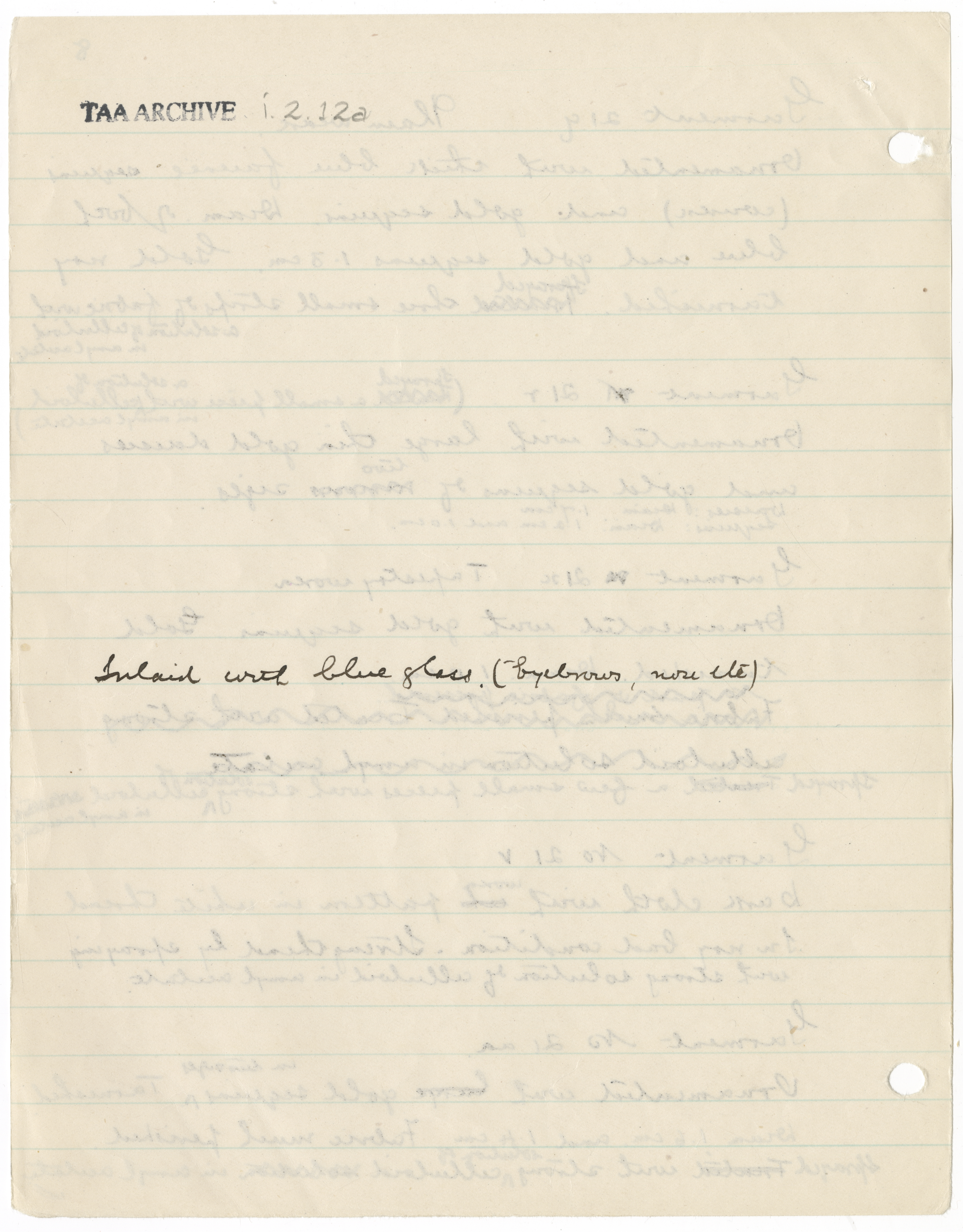 Inlaid with blue glass. (Eyebrows, nose etc)