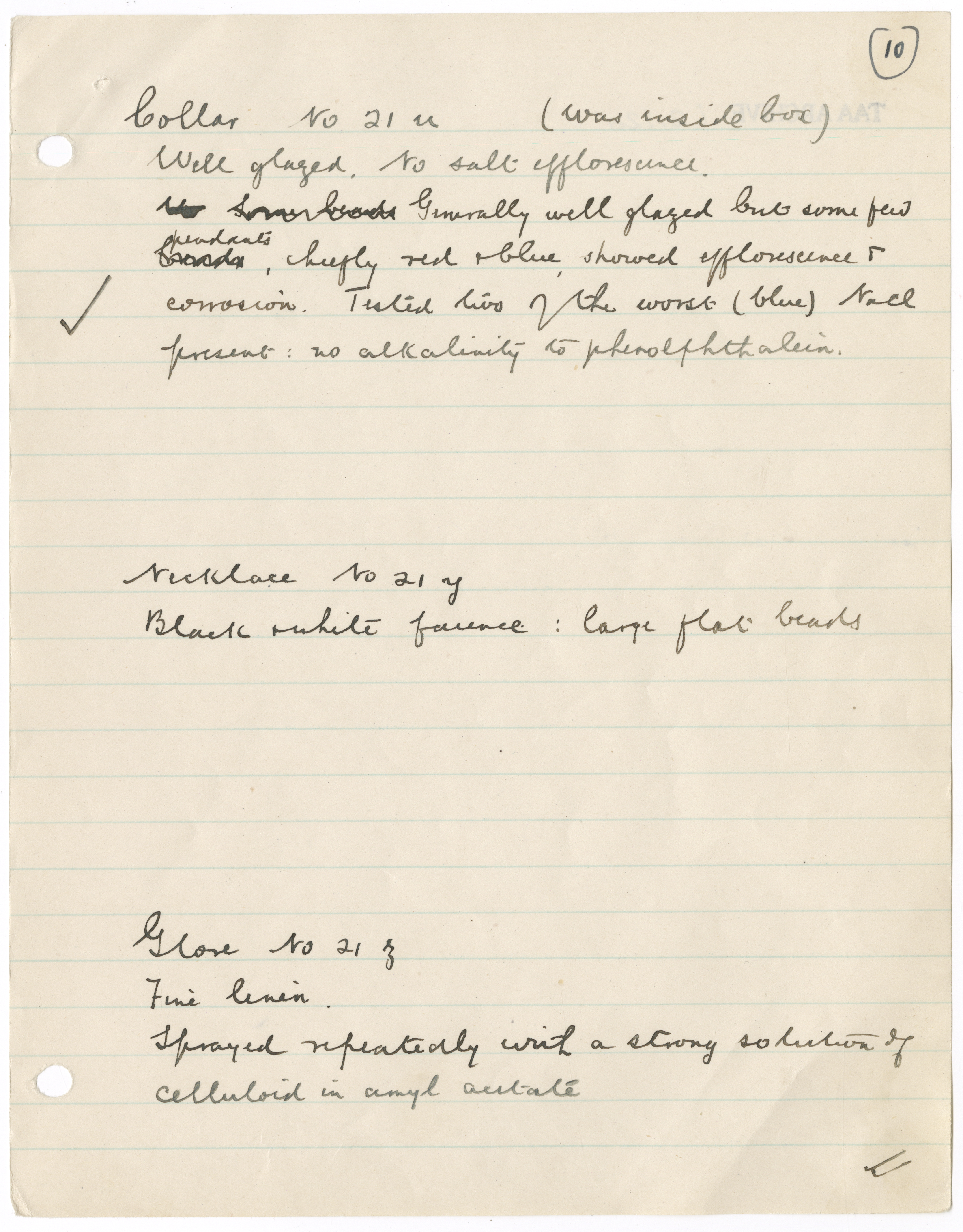 beads/<pendants>, chiefly red & blue, showed efflorescence &