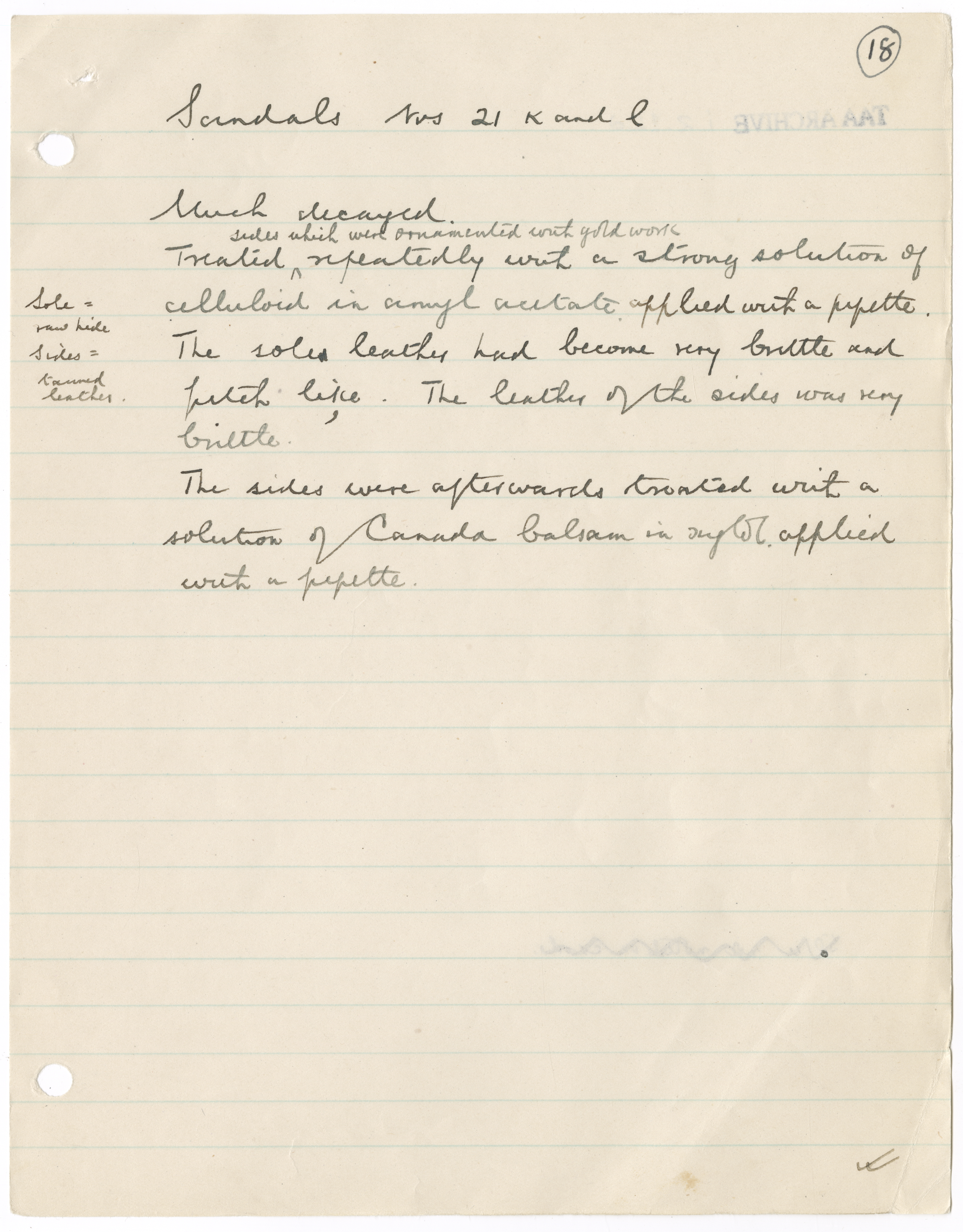 Treated <sides which were ornamented with gold work> repeatedly with a strong solution of celluloid in amyl acetate applied with a pipette.