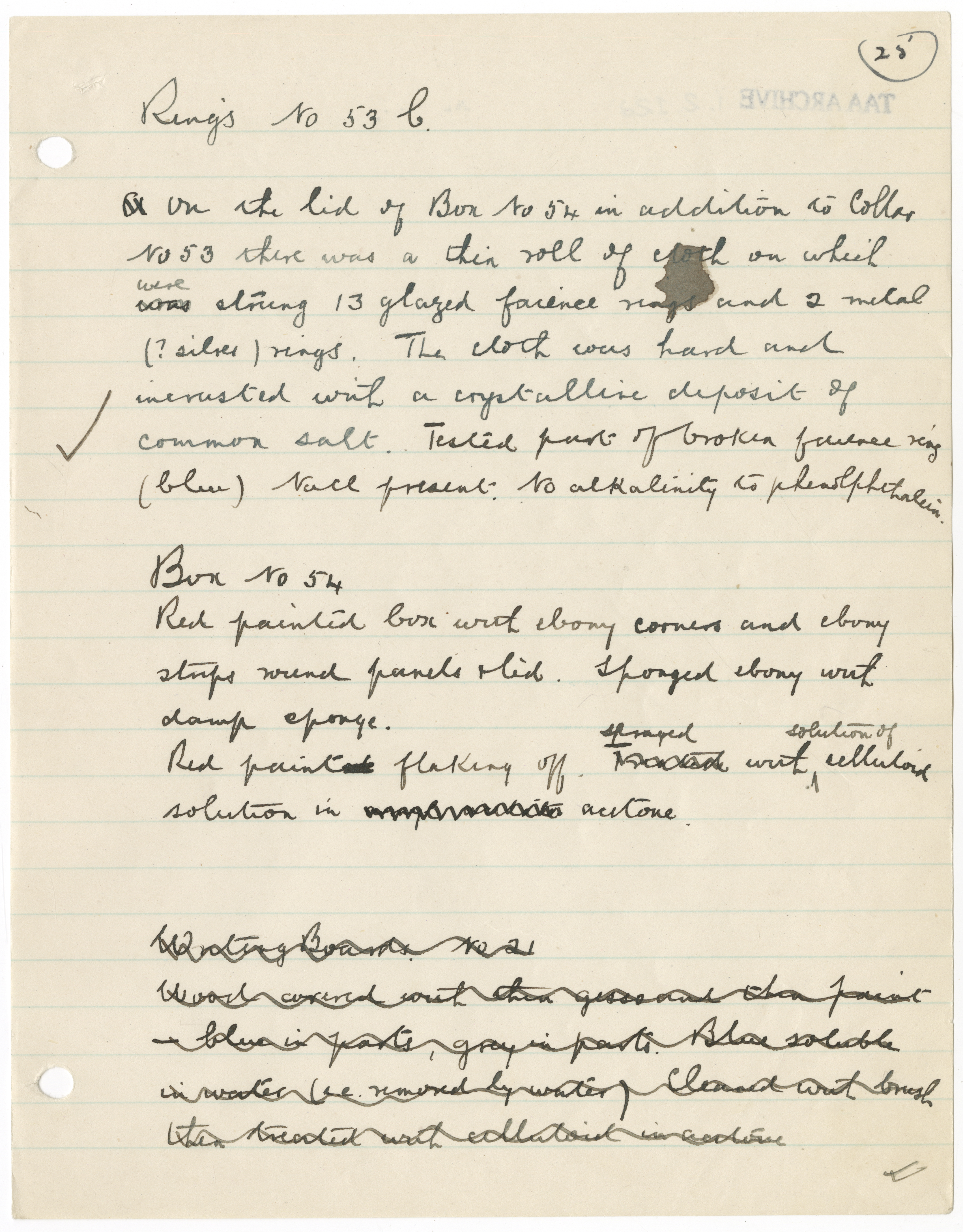 Red painted flaking off. Treated/<Sprayed> with <solution of> celluloid