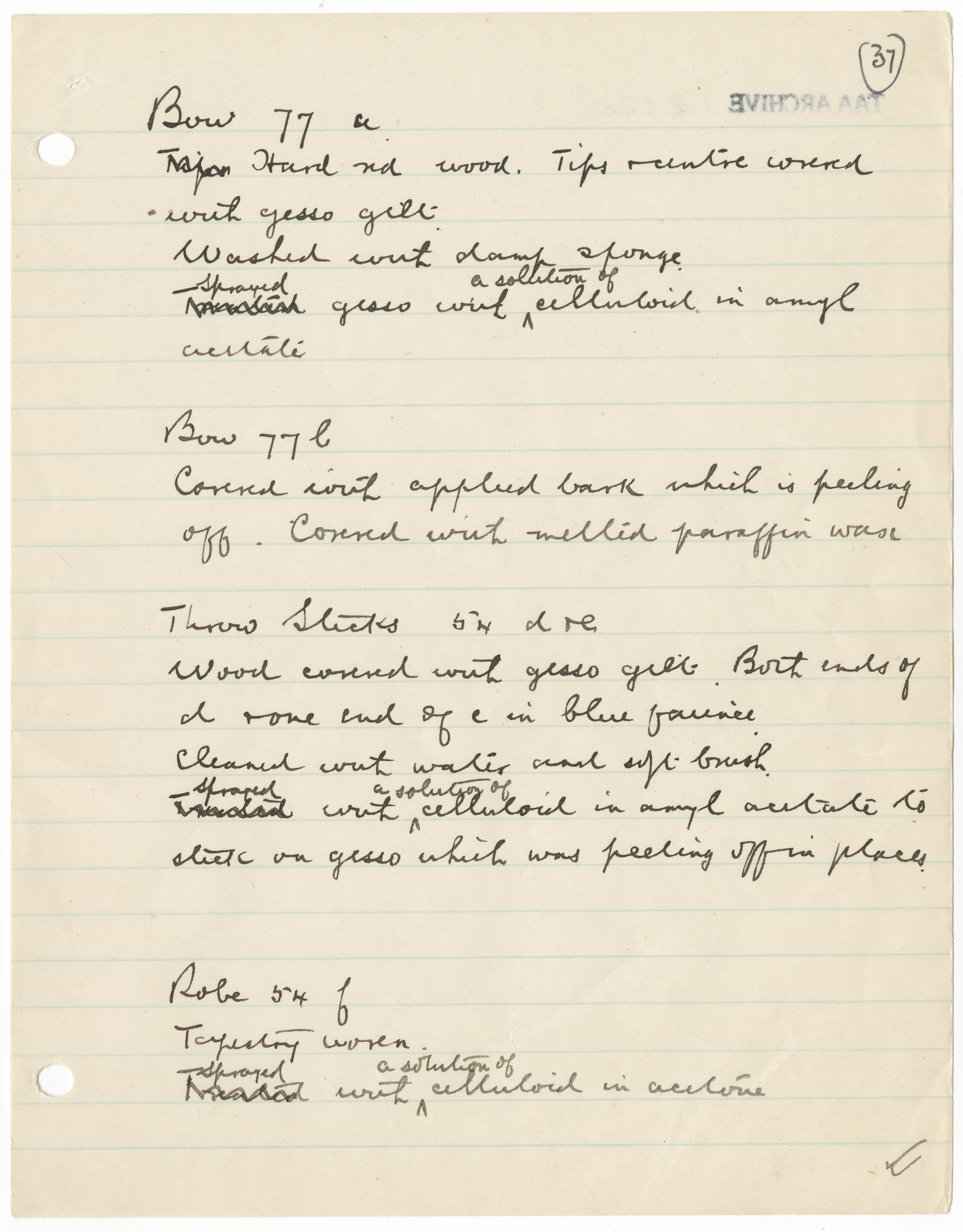 Cleaned with water and soft brush.Treated/<Sprayed> with <a solution of> celluloid in amyl acetate to