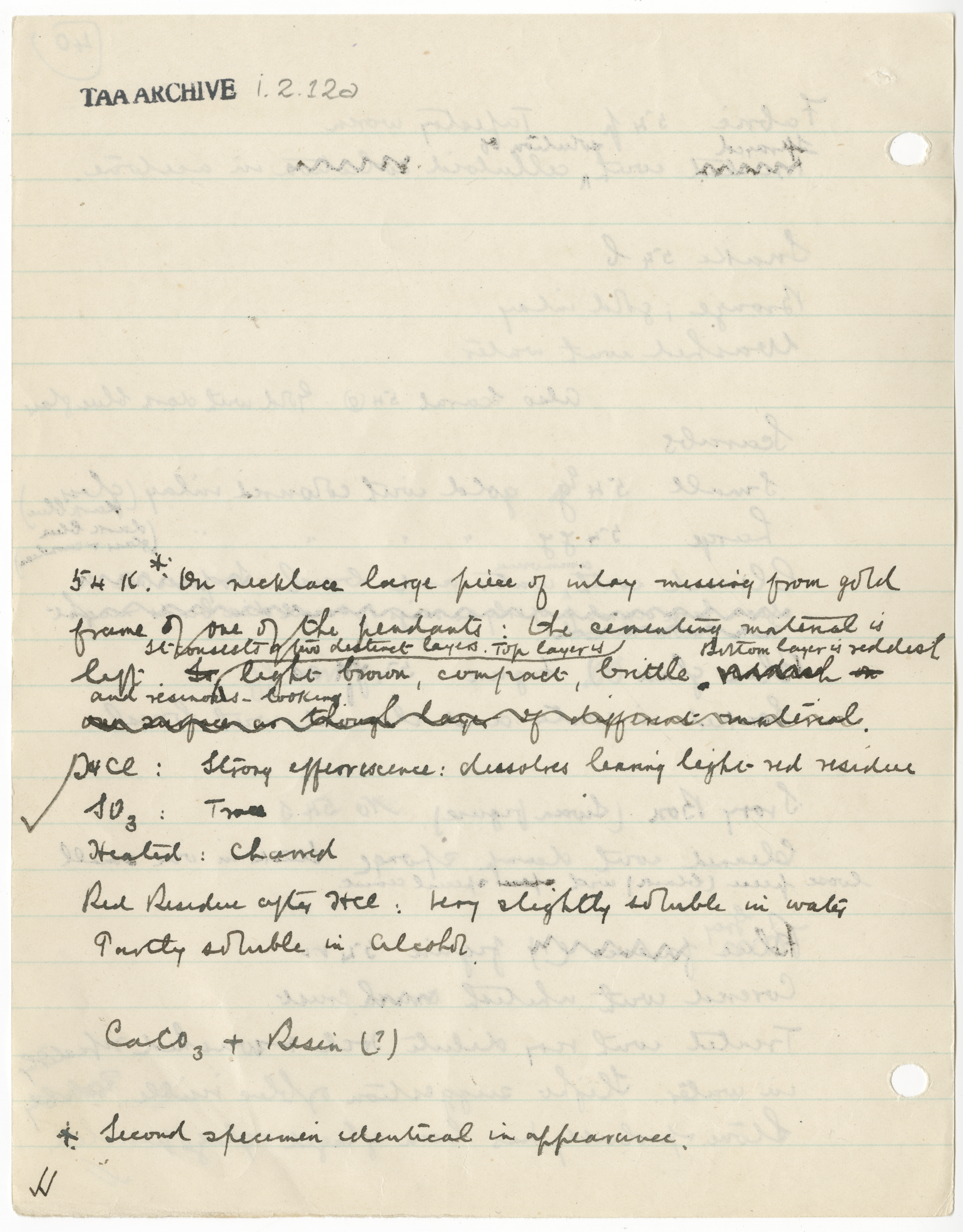 left. St <It consists of two distinct layers. Top layer is> light brown, compact, brittle. Reddish on one surface as though later of different material/<Bottom layer is reddish