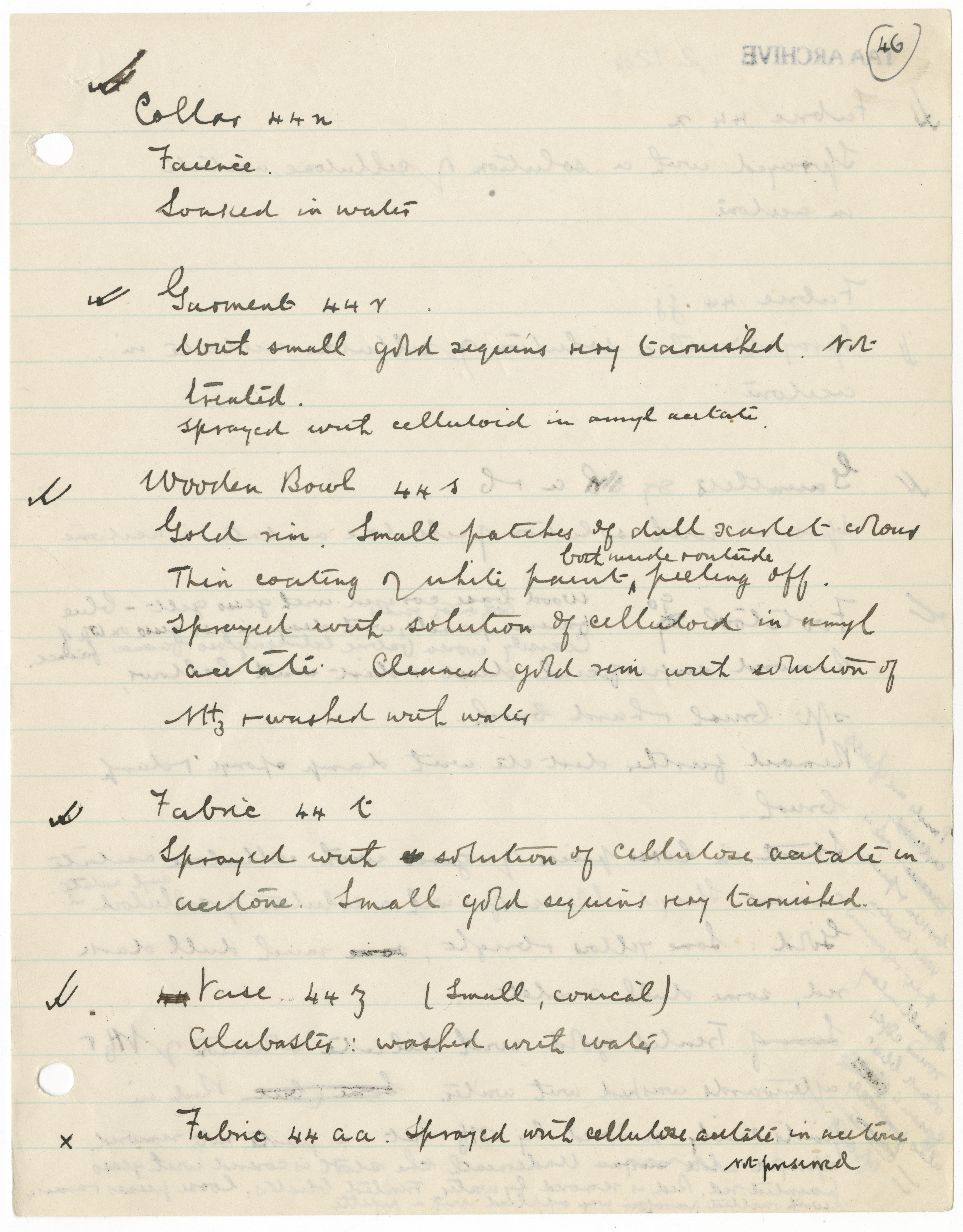 x Fabric 44aa. Sprayed with cellulose acetate in acetone.