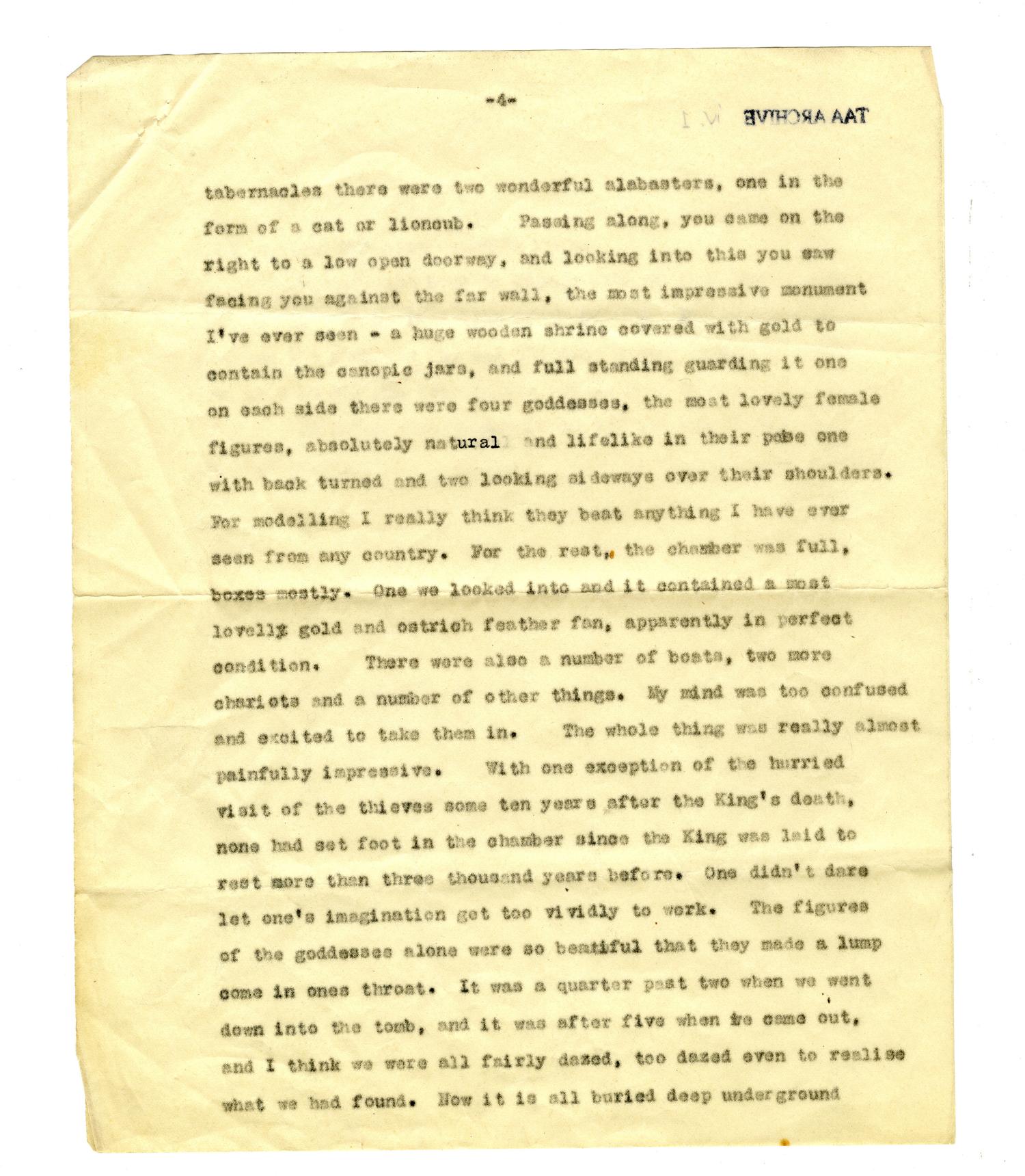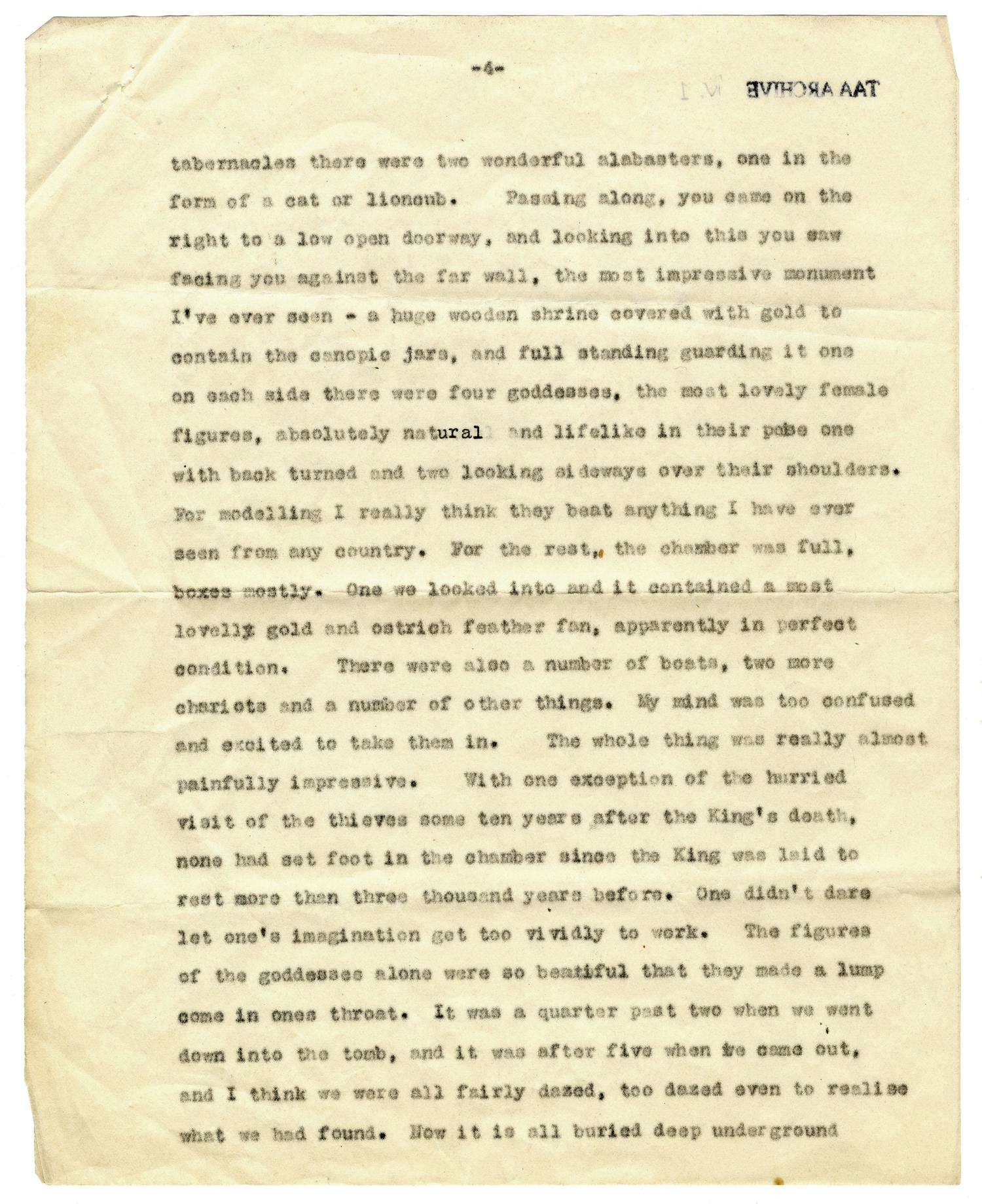 Account of the opening of the burial chamber of Tutankhamun, page 4.