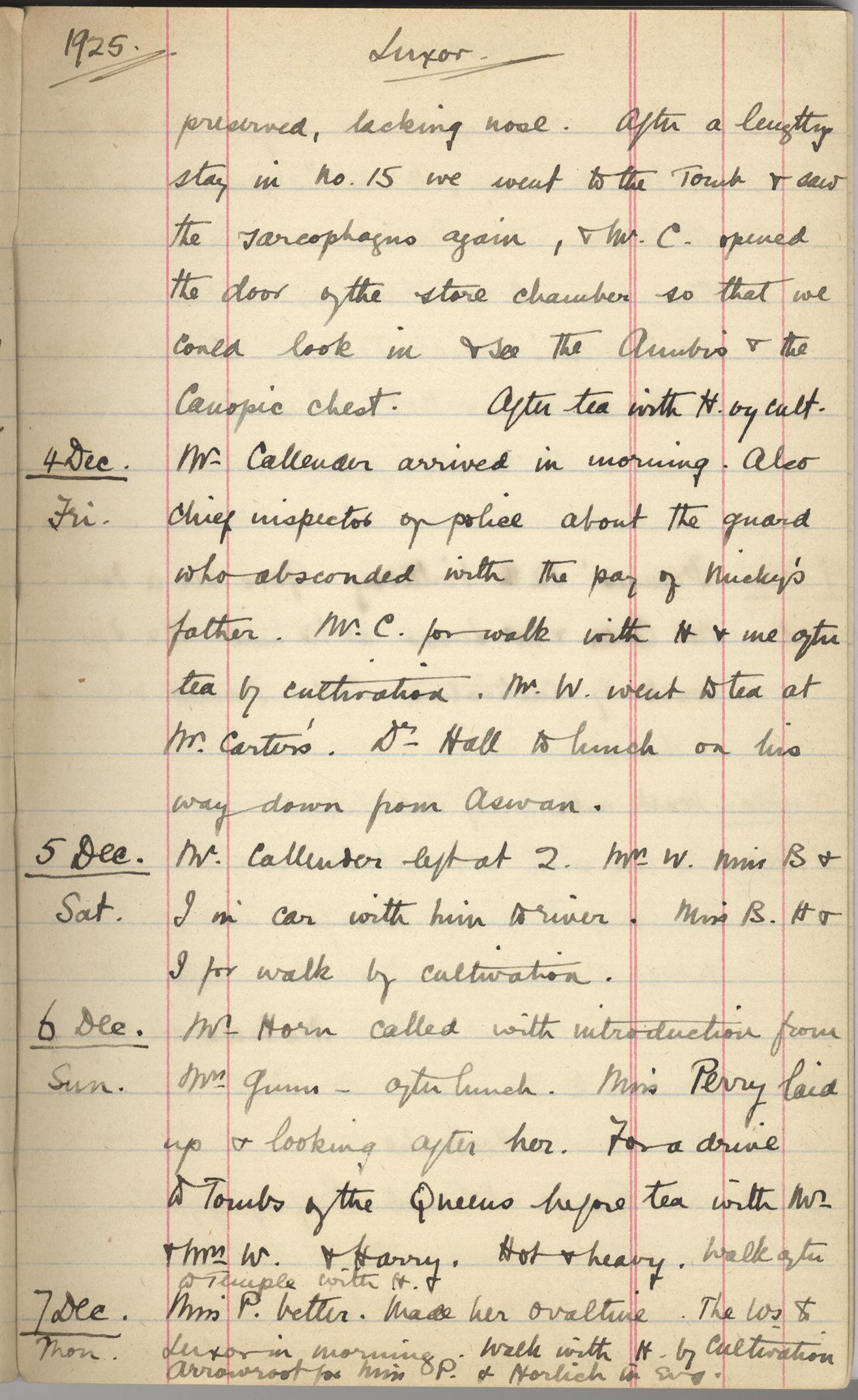 The entry for 3 December discusses the Tutankhamun treasures which Carter showed to Minnie Burton and her friends when they visited the on-site workshop in KV15.