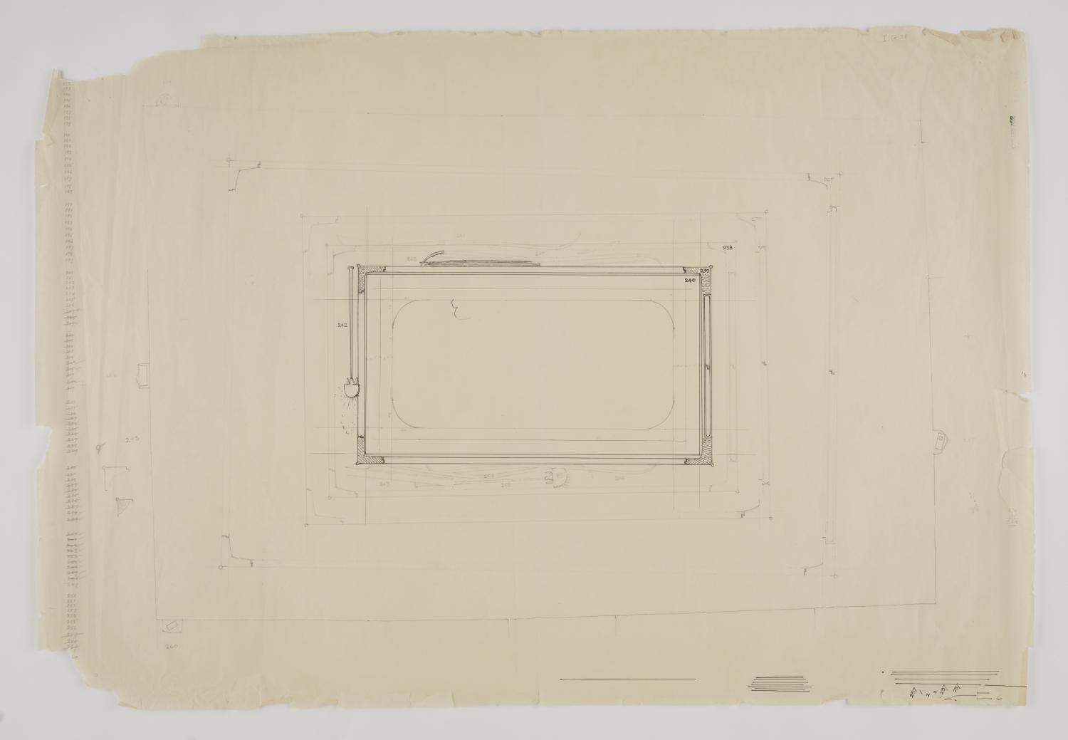 Used for compiling the final plan of Burial chamber, see Carter MSS i.G.31. Also Carter's list of objects for inclusion on plan, written along the left side of sheet.