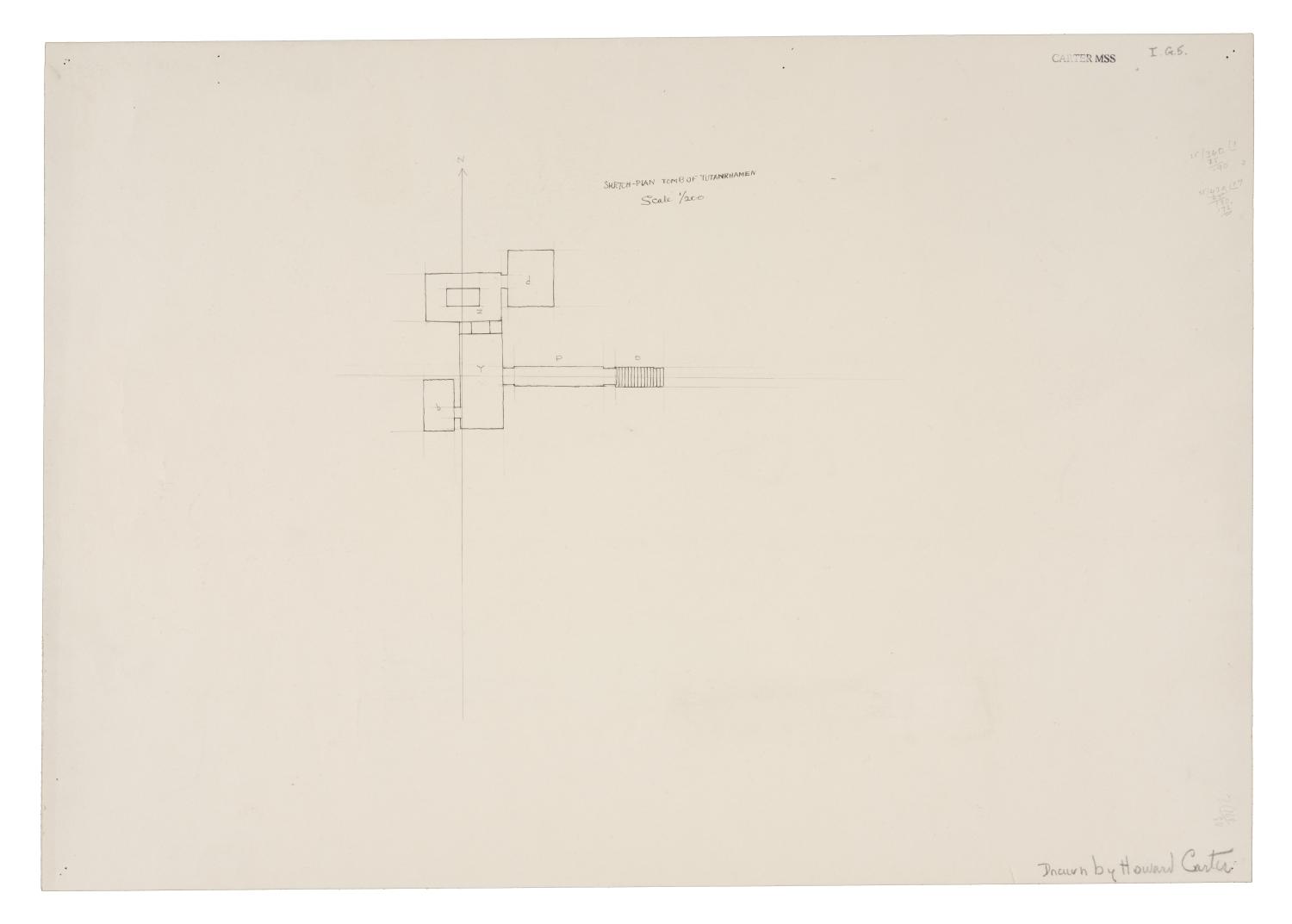 Sketch plan of the tomb, rooms assigned letters b and d, O, P, Y and Z, and orientation