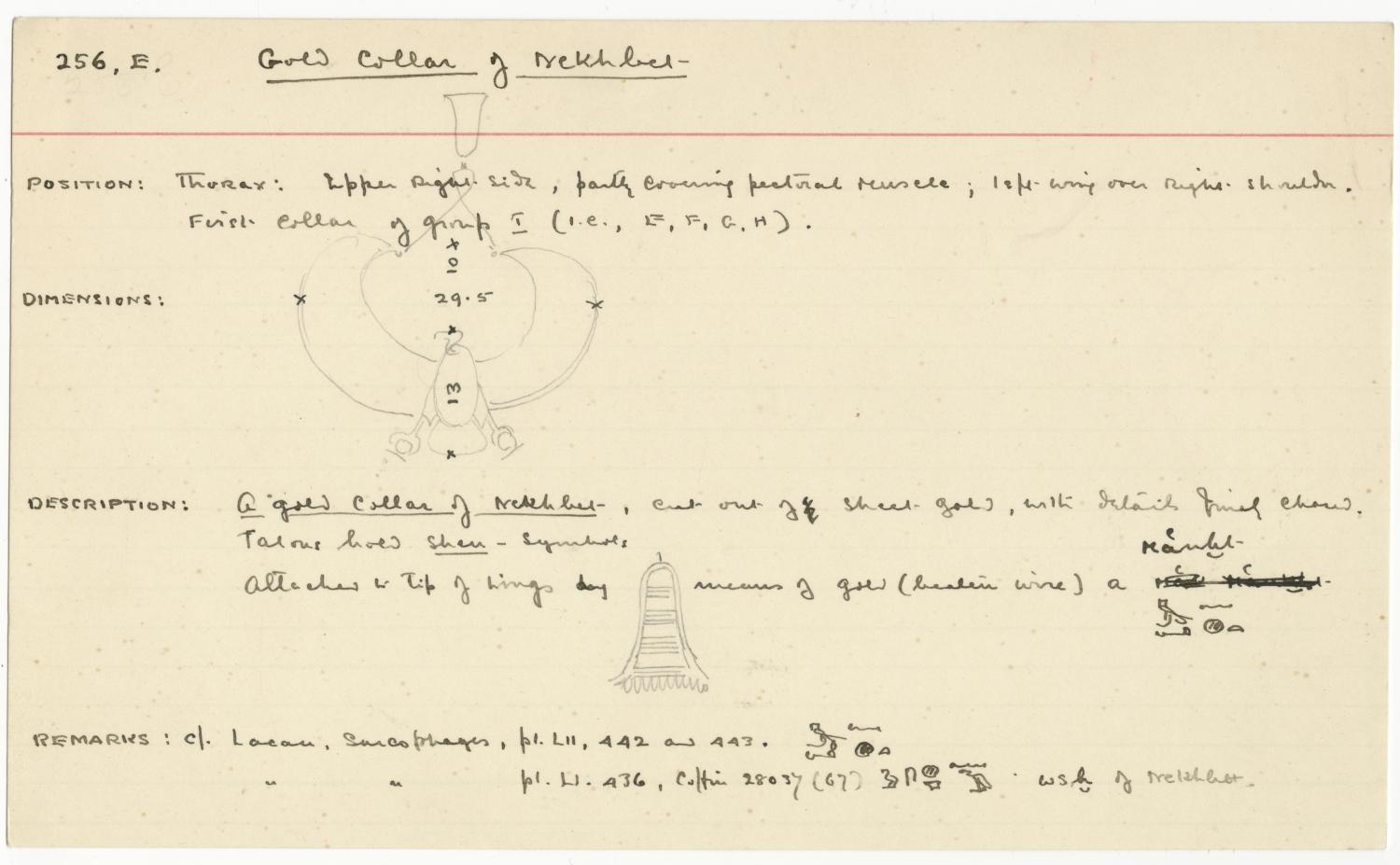 A gold collar of Nekhbet, cut out of f[?] sheet gold, with details finely chased.