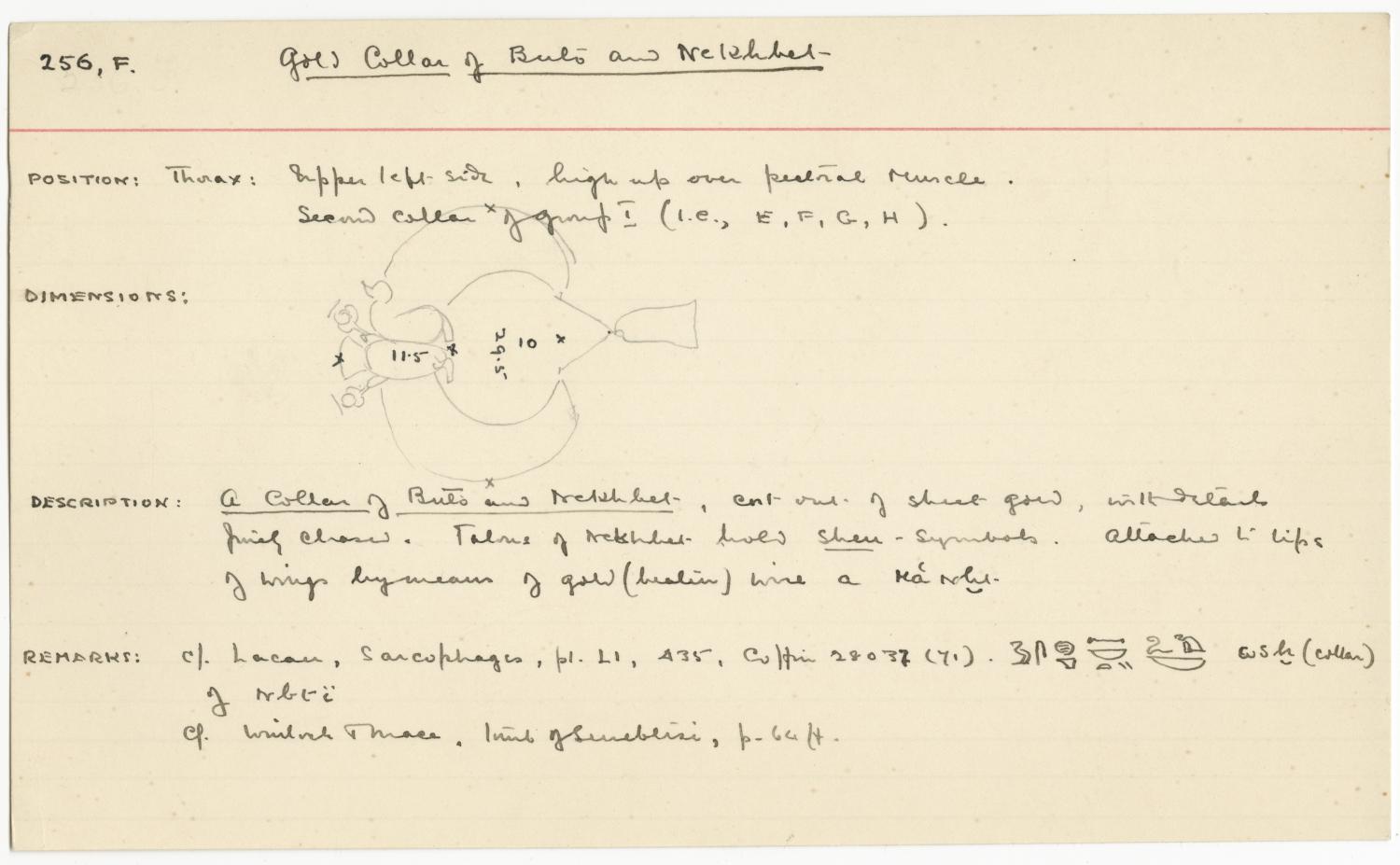 cf. Lacau, Sarcophages, pl. LI, 435, coffin 28032/<7> (71). [ 𓂀 ] wsḫ (collar)