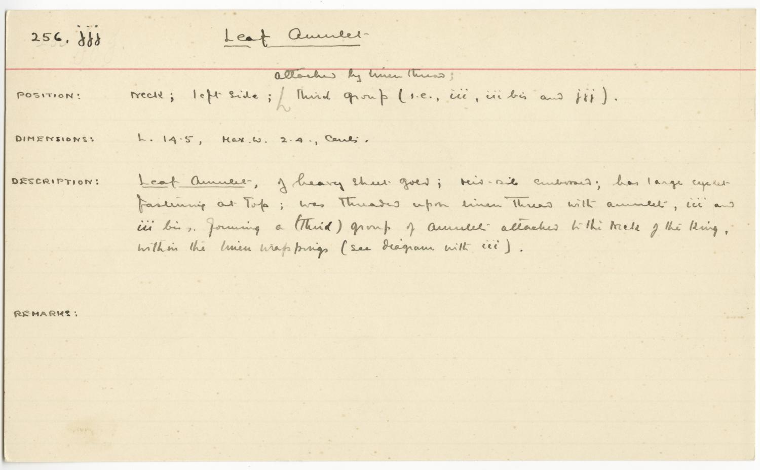Although Carter identified the object as a leaf amulet, it is in fact a feather amulet.