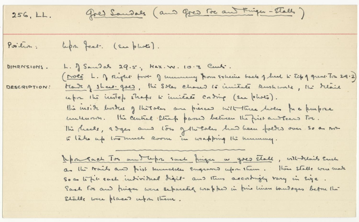 (Note L. of right foot of mummy from extreme back of heel to tip of great toe 24.2)