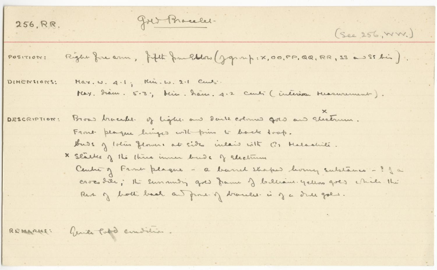 256, RR. Gold Bracelet (See 256, WW.)