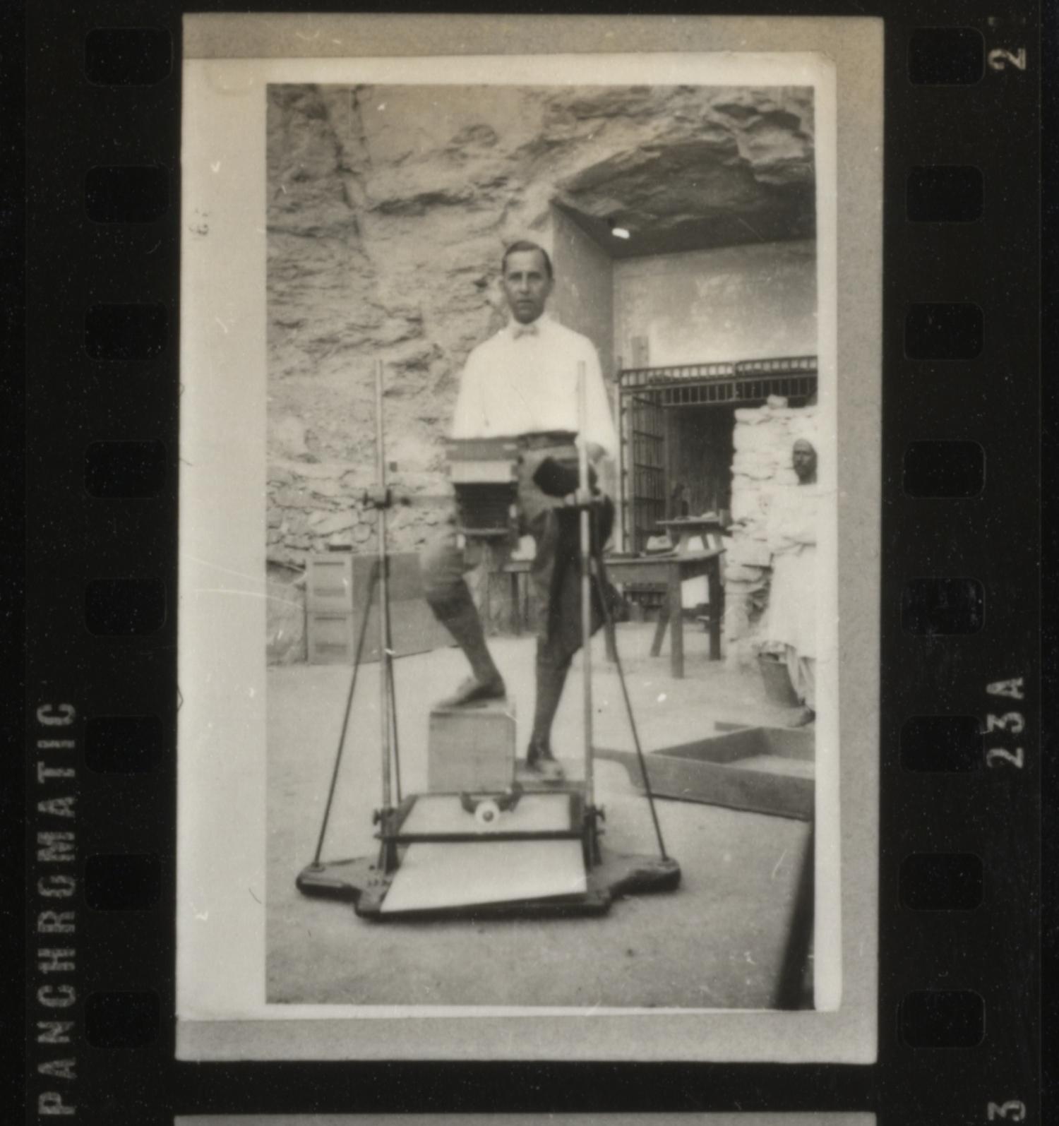 He was then engaged as a excavator at Thebes by Theodore M. Davis (1838–1915) between 1910–1914. From 1914 onwards he worked for the rest of his career as a photographer for the Metropolitan Museum of Art, New York. His task was to record many of the royal and private tombs at Thebes. Between 1922 and 1933 he was lent by the Metropolitan Museum to Lord Carnarvon (1866–1923) and Howard Carter (1874–1939) to make a photographic record during the excavation of the tomb of Tutankhamun.