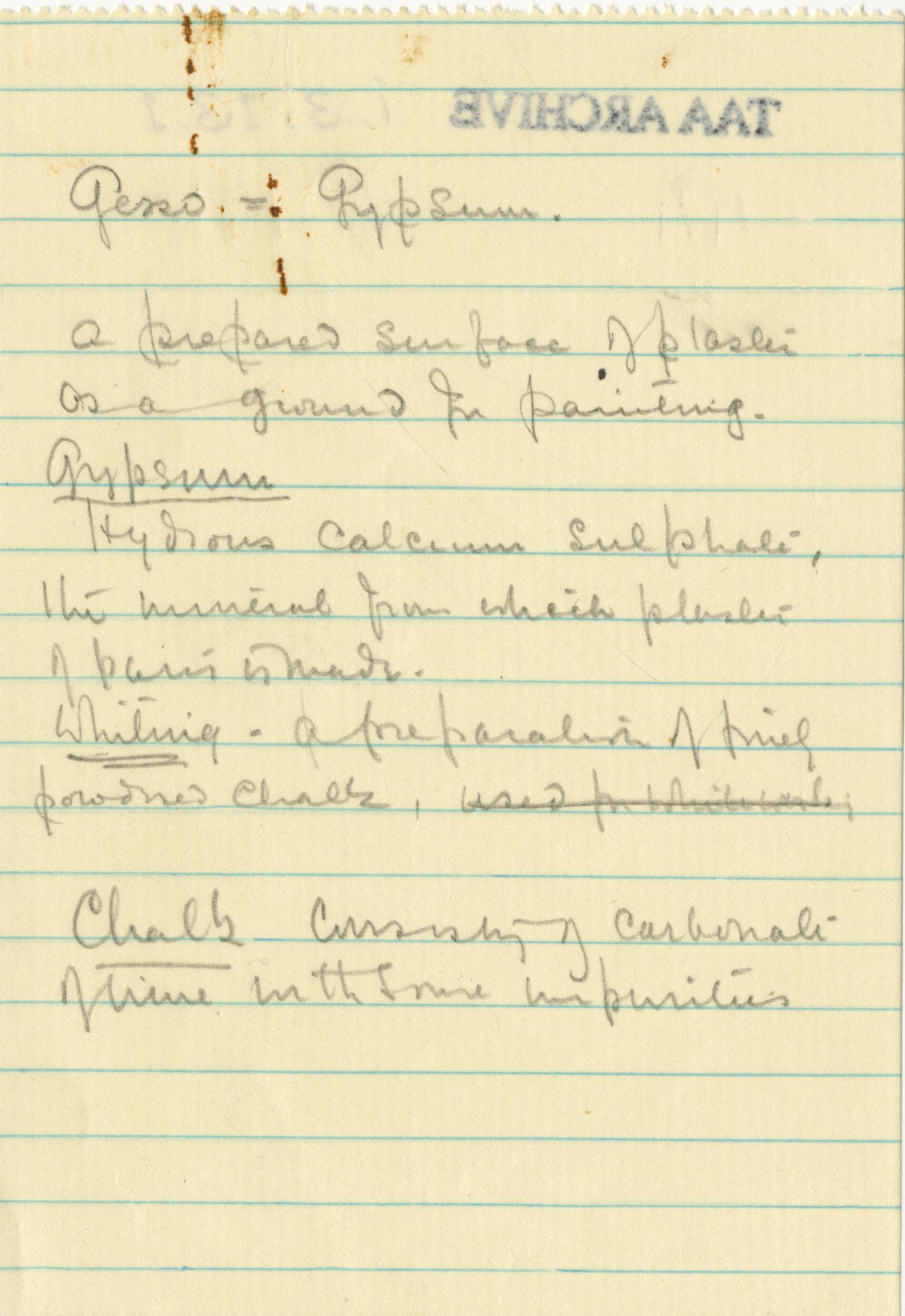 Howard Carter's handwritten manuscript notes on components of gypsum, whiting and chalk.